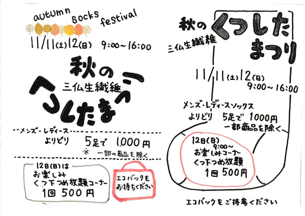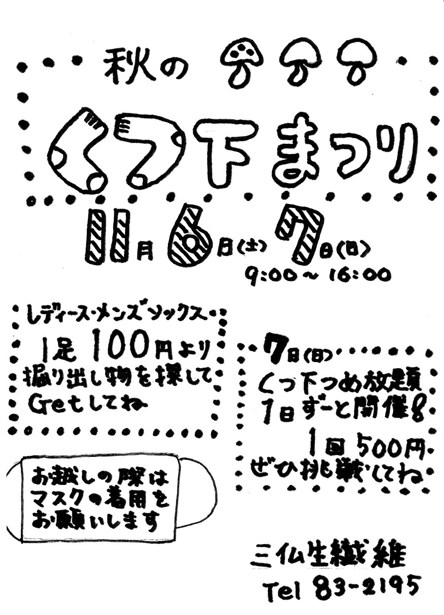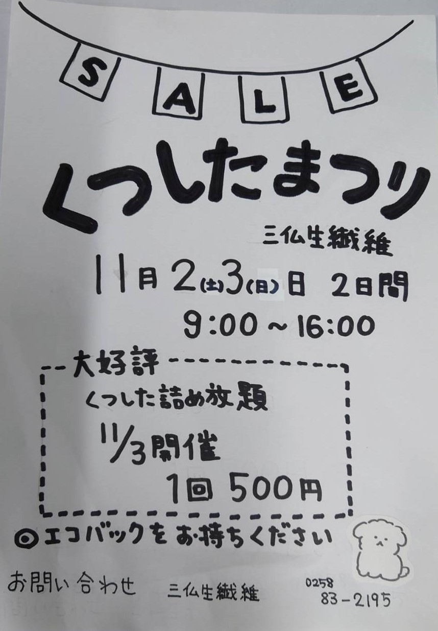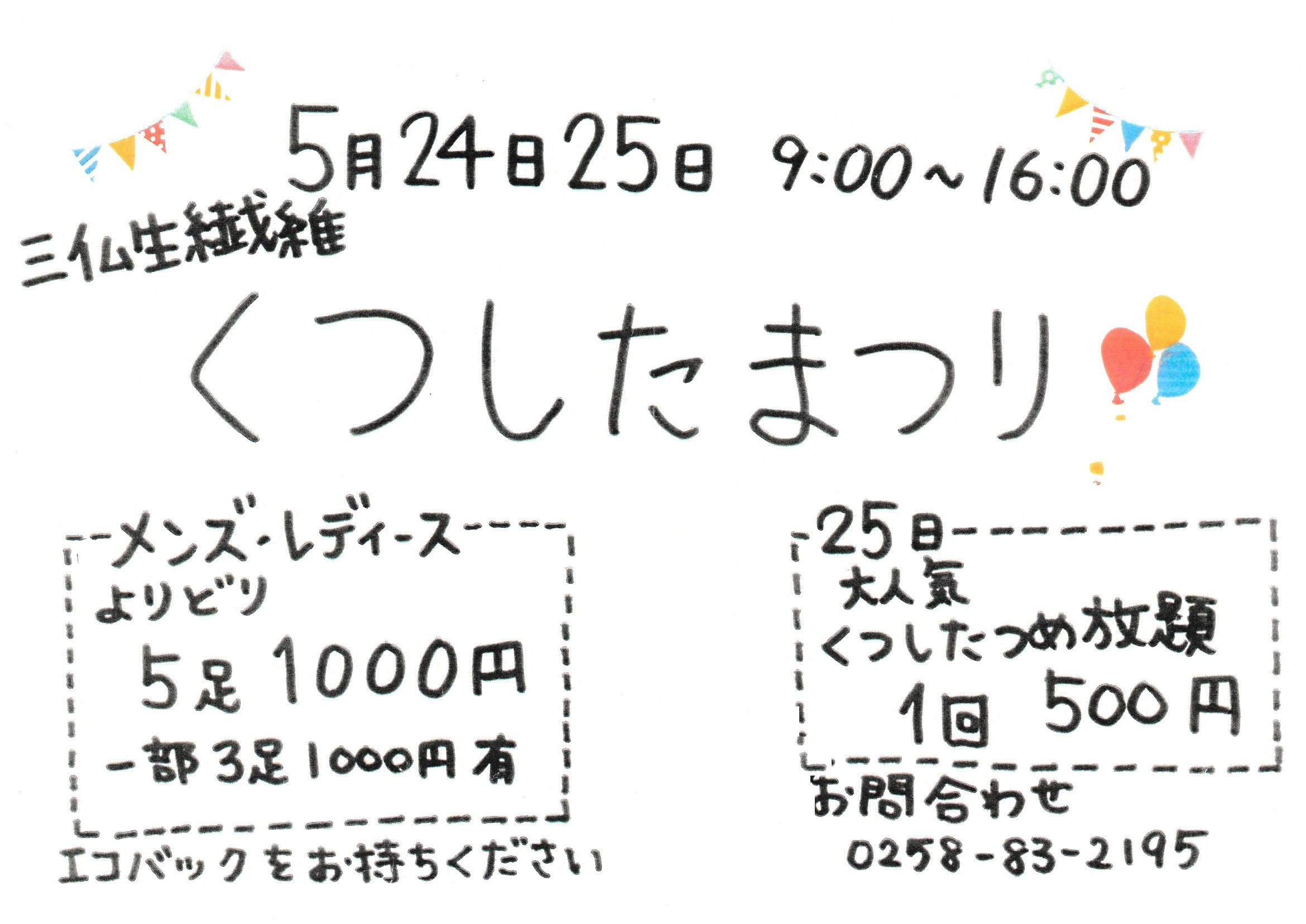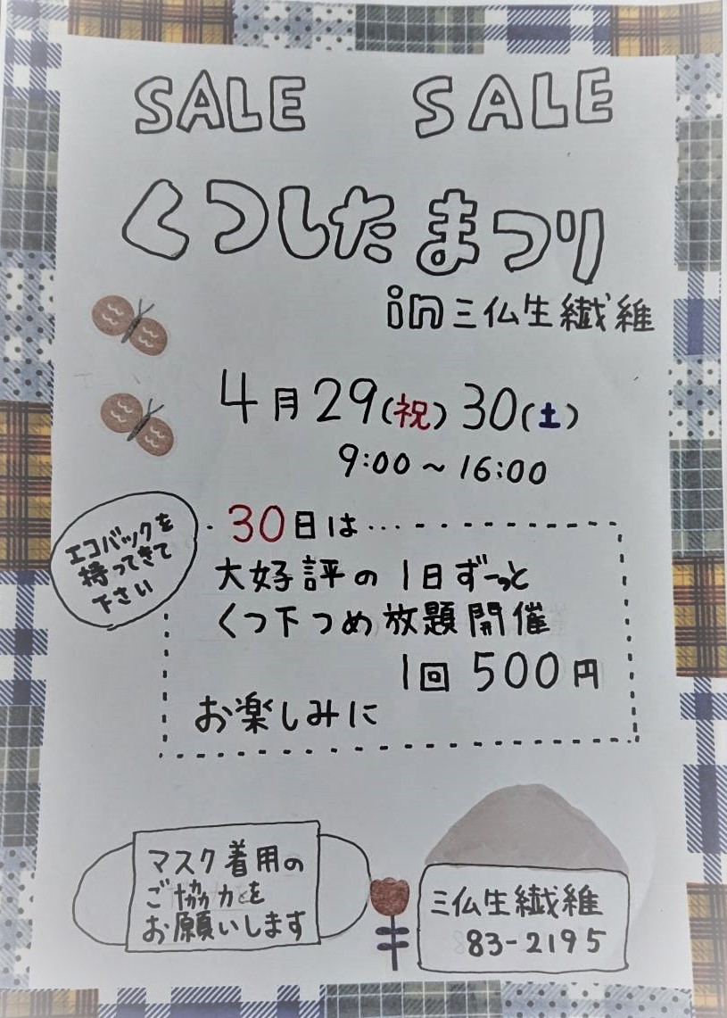 三仏生繊維恒例「くつしたまつり」を開催します。